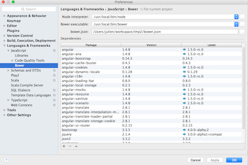 Navigate to Languages & Frameworks → Javascript → Bower (or type “Bower” on the top search bar)