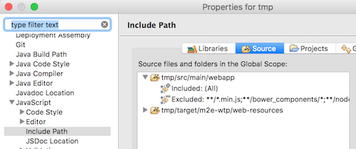 - Right click on Project -> Properties -> Javascript -> Include path