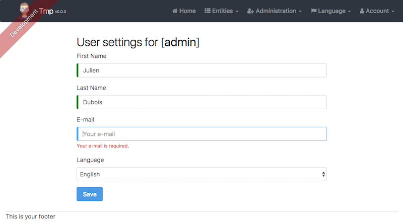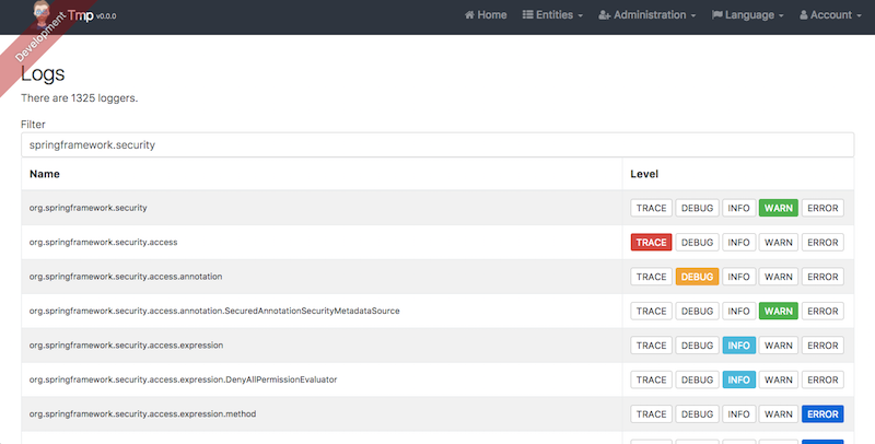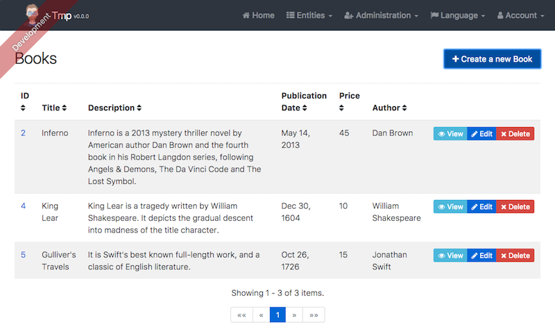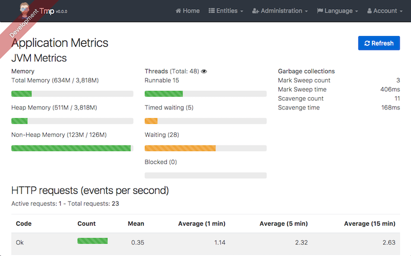 JHipster in a few minutesJHipster in 5 screenshotsOn this pageScreenshots of the generated applicationThe welcome screen The monitoring screen One of the generated forms The log management screen The generated "Book" entity